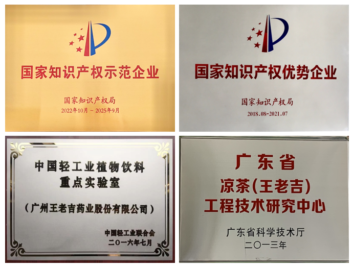 在企業發展過程中,王老吉藥業始終重視科技創新、人才培養?!皬V州市博士后創新實踐基地”是王老吉藥業繼中國輕工業重點實驗室、廣東省名優中成藥與涼茶重點實驗室、廣東省省級企業技術中心、廣東省涼茶(王老吉)工程研究中心之后,又斬獲的一項新的科技創新平臺榮譽。王老吉藥業一貫重視技術創新與技術進步,2011、2014年連續2次認定國家火炬計劃重點高新技術企業,2008年以來連續5次認定為高新技術企業。王老吉藥業現有有效專利數量78項,先后榮獲國家知識產權優勢企業和國家知識產權示范企業等榮譽稱號及其他省市創新企業稱號。王老吉藥業持續依托公司省市級重點科研平臺加大對中成藥和涼茶植物飲料等產品的科技研發力度,并榮獲1項國家科學技術進步獎,4項中國專利優秀獎等諸多國家級、省市科技獎項,其中2017年1月,王老吉涼茶原料DNA條形碼物種鑒定體系獲國家科技進步二等獎,代表中國涼茶行業站上了國家最高科技領獎臺,成為涼茶行業首家獲此殊榮的品牌。
