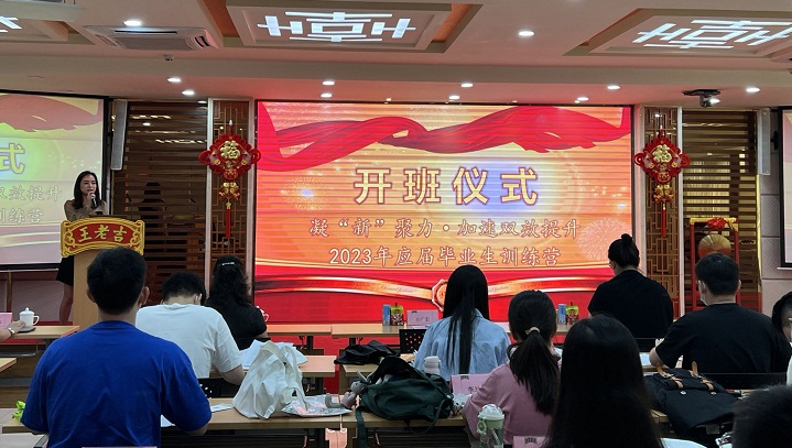 活動的最后,在各位領導及應屆生的見證下,何毅、李冬青、王一維等領導共同敲響了開班大吉的鑼鼓,并宣布本次應屆畢業(yè)生訓練營正式開始!