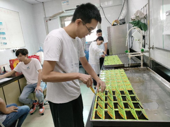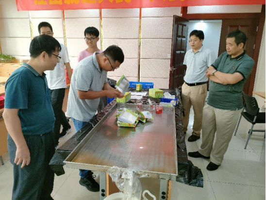 看!打檢開包試驗(yàn)速度比拼也已拉開帷幕了,此過程為涼茶產(chǎn)品批次質(zhì)量和貨架期質(zhì)量驗(yàn)證最重要的檢測程序之一。看:參賽選手們對著一盤55包的樣品,手拿利刀,出手要快,姿勢要帥,在這基礎(chǔ)上還是要安全快速才最為重要。在這打檢開包比賽中,比賽者謹(jǐn)記“一橫二豎三角度,四刀五邊六力度”的口訣,憑借著獨(dú)一無二的訣竅,看誰能脫穎而出,靠的還是技術(shù)活啊!只見一快刀手,55包的樣品在不到1分半的時間內(nèi),一包包充滿香氣,晶瑩剔透的涼茶已呈現(xiàn)在評委的眼前。此時此刻,或許評委品的不是涼茶,更多的是驚嘆其精湛的技術(shù)吧。經(jīng)過激烈比賽,由食品質(zhì)量部的廠部同事和OEM品控駐點(diǎn)包攬了前三名,他們分別是第一名林灼勤,第二名葉揚(yáng)威和胡素輝,第三名鄭穎俊、鐘飛虹和成偉杰。