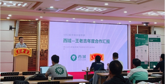 第二環(huán)節(jié),西域公司銷售部經(jīng)理馬光耀回顧了2023年與王老吉藥業(yè)電商采購(gòu)業(yè)務(wù)開展情況,針對(duì)下一階段重點(diǎn)工作安排進(jìn)行分享,詳細(xì)介紹西域數(shù)字化解決方案是如何幫助王老吉藥業(yè)實(shí)現(xiàn)降本增效,提交交付效率,在訂單、交付、物流、發(fā)票等各環(huán)節(jié)實(shí)現(xiàn)智能運(yùn)維與綜合管理,最終實(shí)現(xiàn)線上流程閉環(huán)。