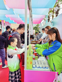 活動現(xiàn)場以集市的形式,共設置32個展位,對入選的非遺手信進行集中展示,并遴選出其中10項非遺代表性項目,開展互動體驗。眾多產(chǎn)品匯聚一堂,打造“廣東非遺手信”新IP,提振非遺消費活力。王老吉涼茶在互動體驗區(qū)也擺起了攤兒,為來來往往的市民朋友們送上涼茶,讓大家切身感受舌尖上的非遺韻味。