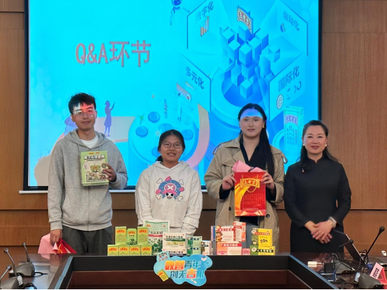在宣講會的互動環節,同學們就自己所關心的公司發展平臺、崗位需求等問題與各參會領導進行了互動交流。人力資源部林華梅副總監就宣講的內容對同學進行了提問,回答正確的同學將獲得盲盒獎品,并由何書記親自送出,對互動環節積極提問的同學也準備了特別禮品,現場氛圍熱烈高漲。