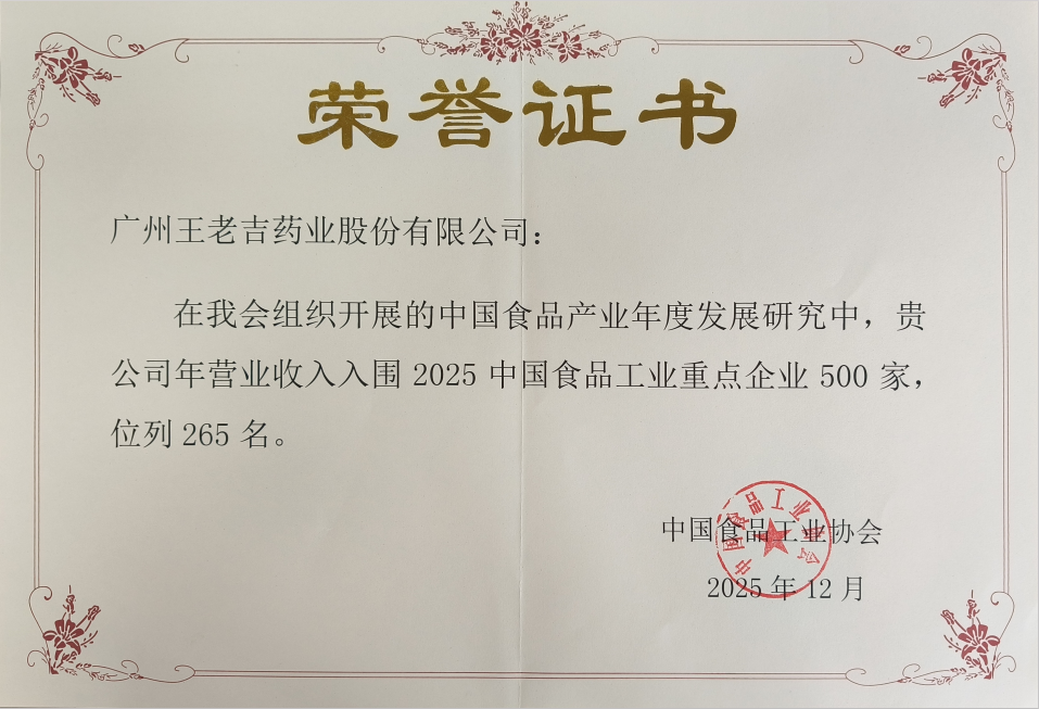王老吉藥業(yè)入圍“2025中國食品工業(yè)重點(diǎn)企業(yè)500家”,彰顯頭部引領(lǐng)作用