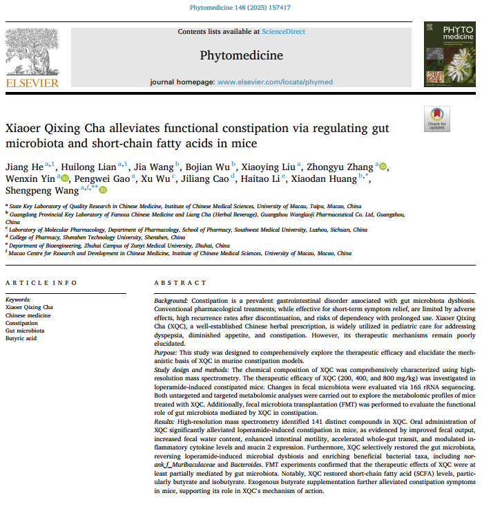 王老吉藥業(yè)小兒七星茶顆粒科研成果榮登國際SCI期刊《Phytomedicine》