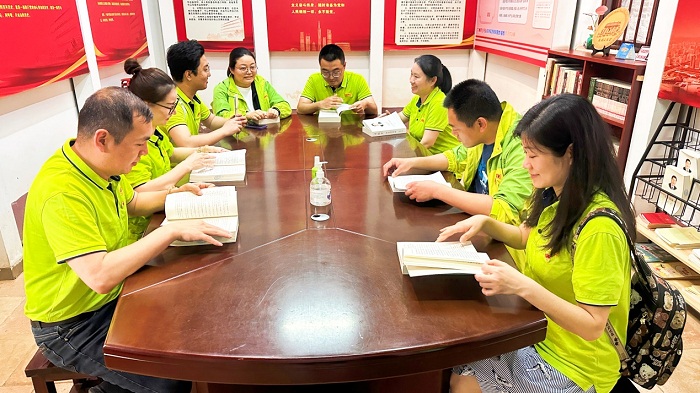 紅色之旅的第二站是三元古廟——鴉片戰(zhàn)爭時期廣州人民三元里抗英誓師的地方,這里記錄了中國近代史上人民第一次由民眾自發(fā)大規(guī)模反抗外來侵略并取得勝利的一場斗爭,充分反映了中國人民不畏強暴、勇于反抗侵略的民族精神和優(yōu)良傳統(tǒng)。銘記歷史,緬懷先烈,黨員們圍觀了硝煙大炮,參觀了節(jié)馬圖碑、三星旗、抗英武器等文物和相關圖片。在陳烈書記的帶領下全體黨員們共坐古廟里的黨員活動室,開展從古到今愛國主義精神激烈討論,隨后一起打開《習近平治國理政第四卷》,共同學習探討《堅定不移推進中國式現(xiàn)代化》。
